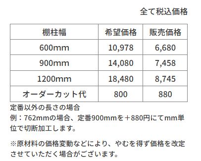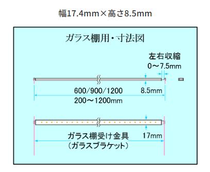 601mm~899mmサイズのガラス棚受け用置くピカを、お客様ご希望の長さで製作いたします。