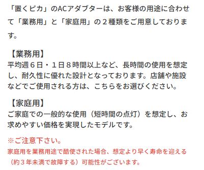 各灯具の消費電力の合計がACアダプターの容量を超えないようにして下さい。