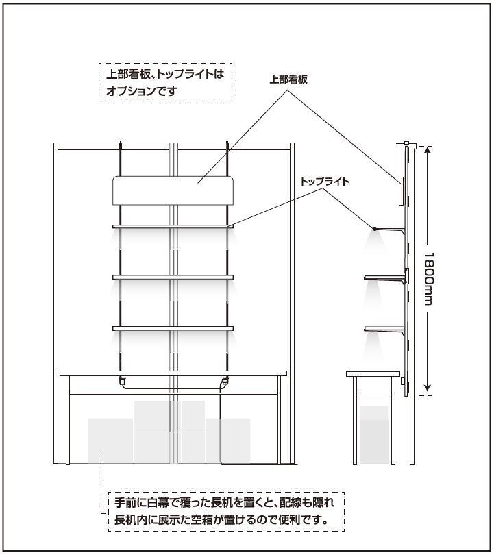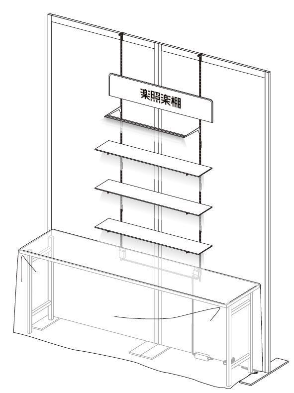 展示会向け 2400mmタイプ(照明付き棚板3枚付き)
